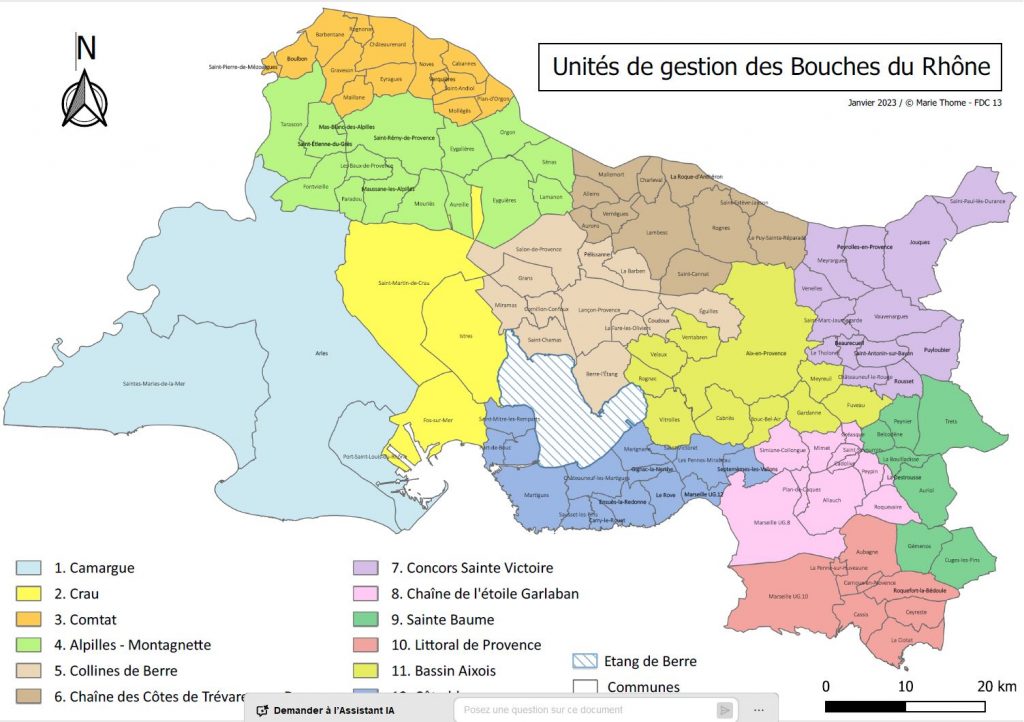Chaque membre du conseil d’administration de la Fédération est en responsabilité d’une UG ( unité de gestion) en ce qui concerne le président de la société communale de Chasse de La Ciotat, sa responsabilité en lien avec son appartenance à ce CA est celle du secteur 10 « littoral de Provence ».