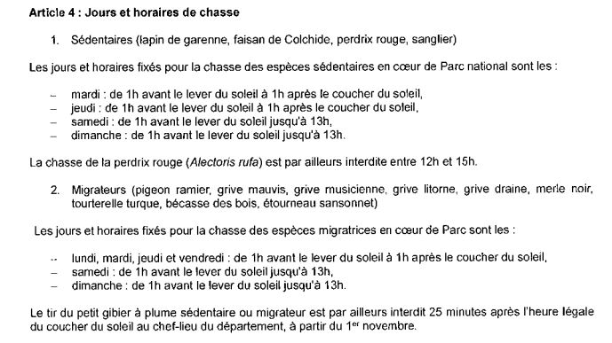 Réglementation chasse 2023-2024 du conseil d’administration du Parc national