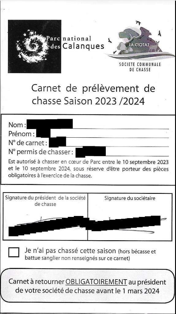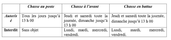 Extrait de la réglementation article N° 4 il est à noter que les jours de chasse apparaissent sur le carnet de prélèvement.