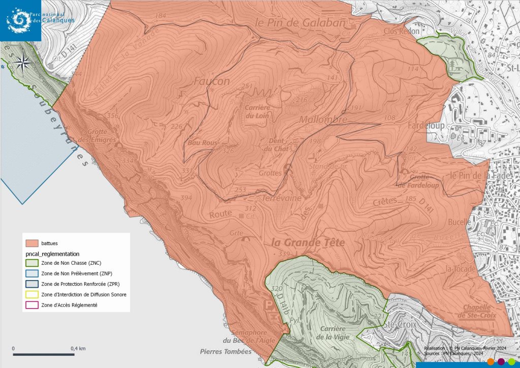 Particularité: les battues aux sangliers sont déclarées 48 h00 à l’avance à la direction du parc national des Calanques.