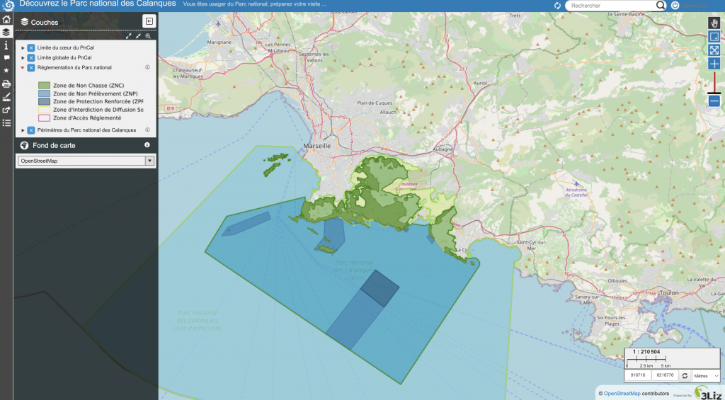 Périmètre de La Ciotat et une partie de Cassis dans le parc national des Calanques