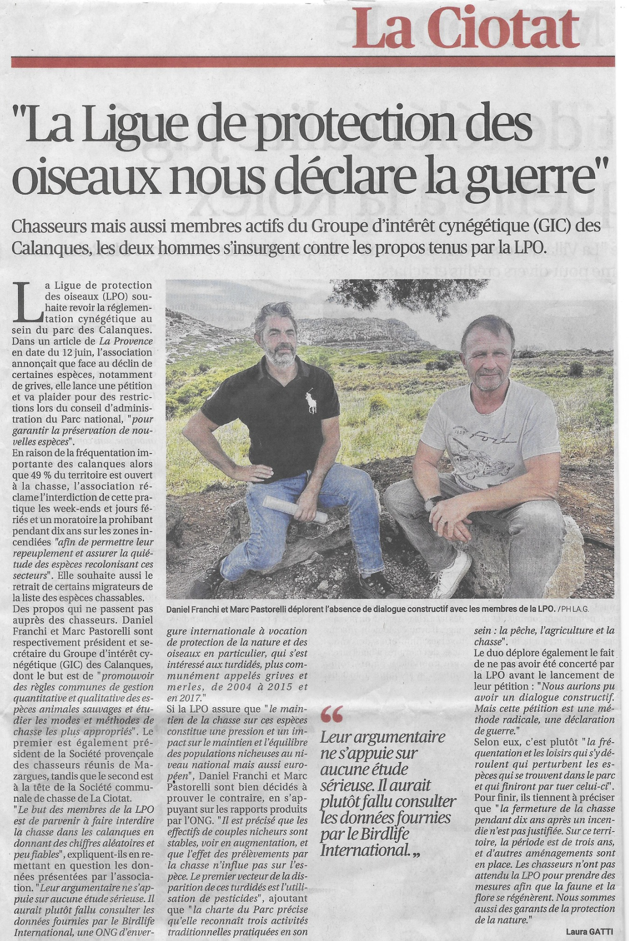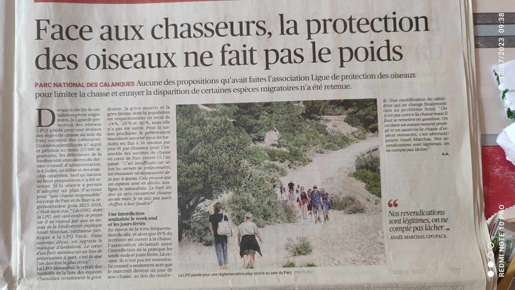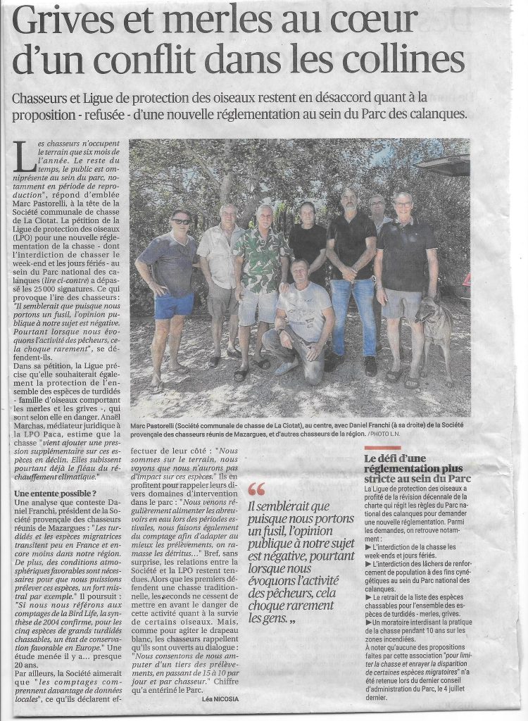 La Provence : Les chasseurs d’insurgent contre la ligue de protection des oiseaux