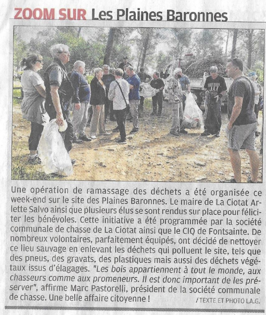Ville de la Ciotat : Opération de ramassage des déchets plaines Baronnes